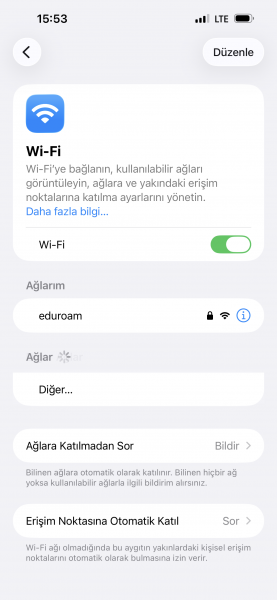 iPhone ve iPad Cihazları İçin Eduroam Bağlantı Adımları